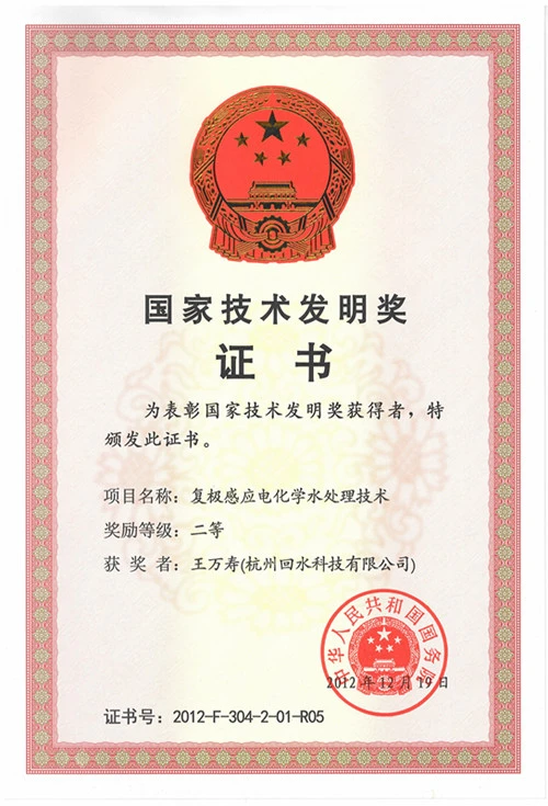 中国科学院生态环境中心共同研发的“复极感应电化学水处理技术”获得国家技术发明二等奖;