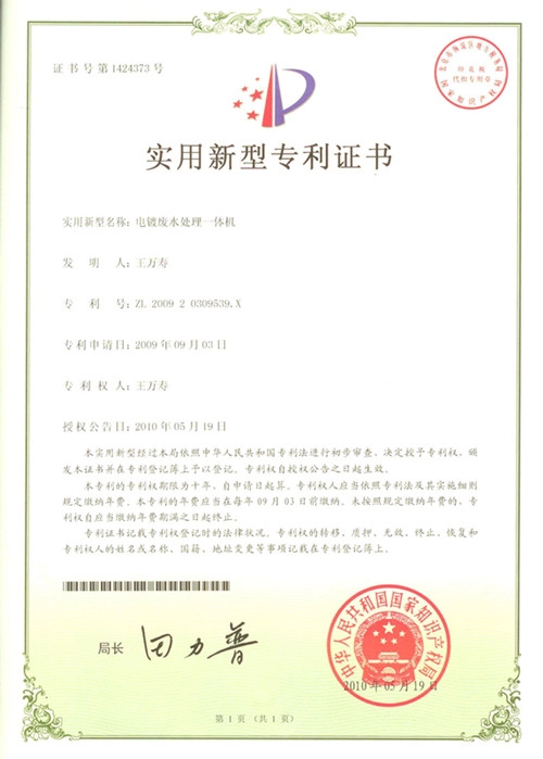 “重金属废水治理与资源回用设备”获得国家火炬计划项目证书;