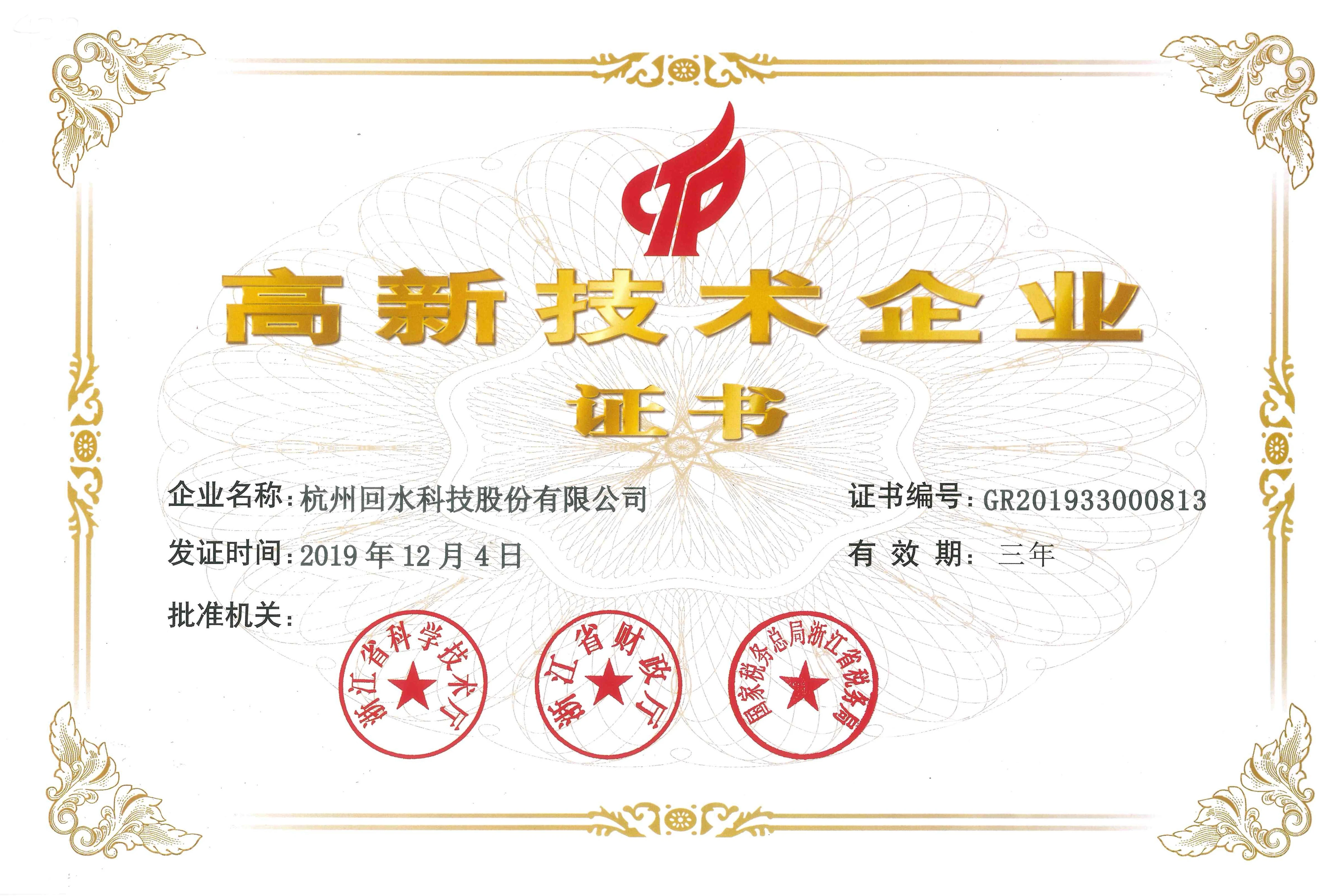 杭州回水科技股份有限公司成立于2005年10月24日,是一家专业从事环境深度治理及资源回用技术开发和专用设备生产的国家高新技术企业。