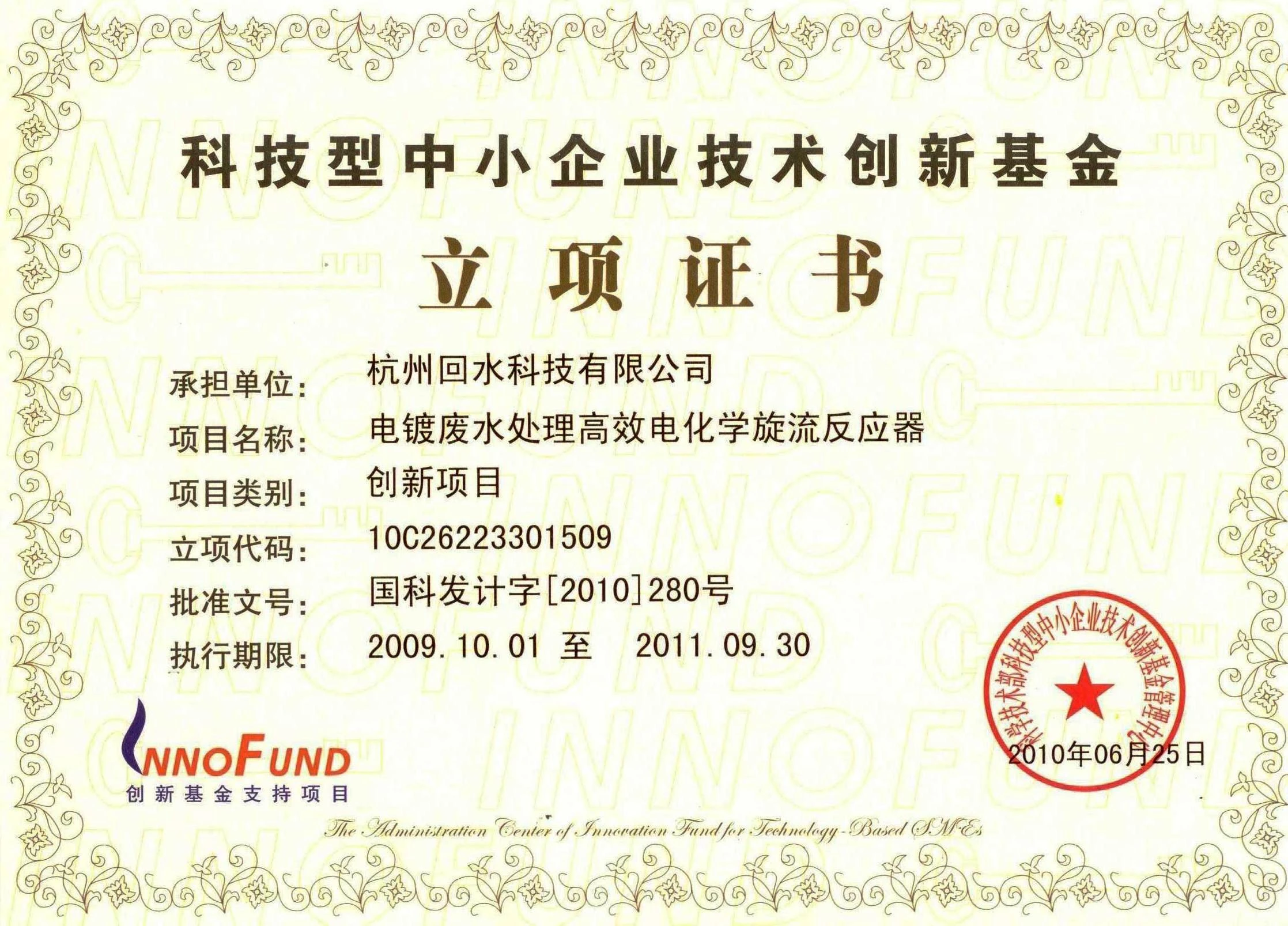 “电镀废水处理高效电化学旋流反应器”项目获得国家科技型中小企业技术创新基金立项支持;