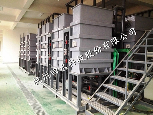 湖南常德金属表面处理产业园位于常德市经济开发区,是一家专业从事金属表面处理生产的表面处理工业园。园区企业主要生产工艺有电镀、电泳、磷化、阳极氧化、钝化、达罗克、PCB和化学镀等,会排出含有悬浮物、酸、碱、铜、镍、有机物等有污染成分的工业废水。园区总体规划废水量为4000m3/d,采用高级电化学一体机技术,经处理后排放的废水重金属指标稳定达到《电镀污染物排放标准》(GB21900-2008)表3标准,其他污染物指标达到《电镀污染物排放标准》(GB21900-2008)表2标准,部分废水经深度处理后可替代自来水,回用到电镀前处理、车间和设备冲洗水等要求水质较低的工艺段用水。