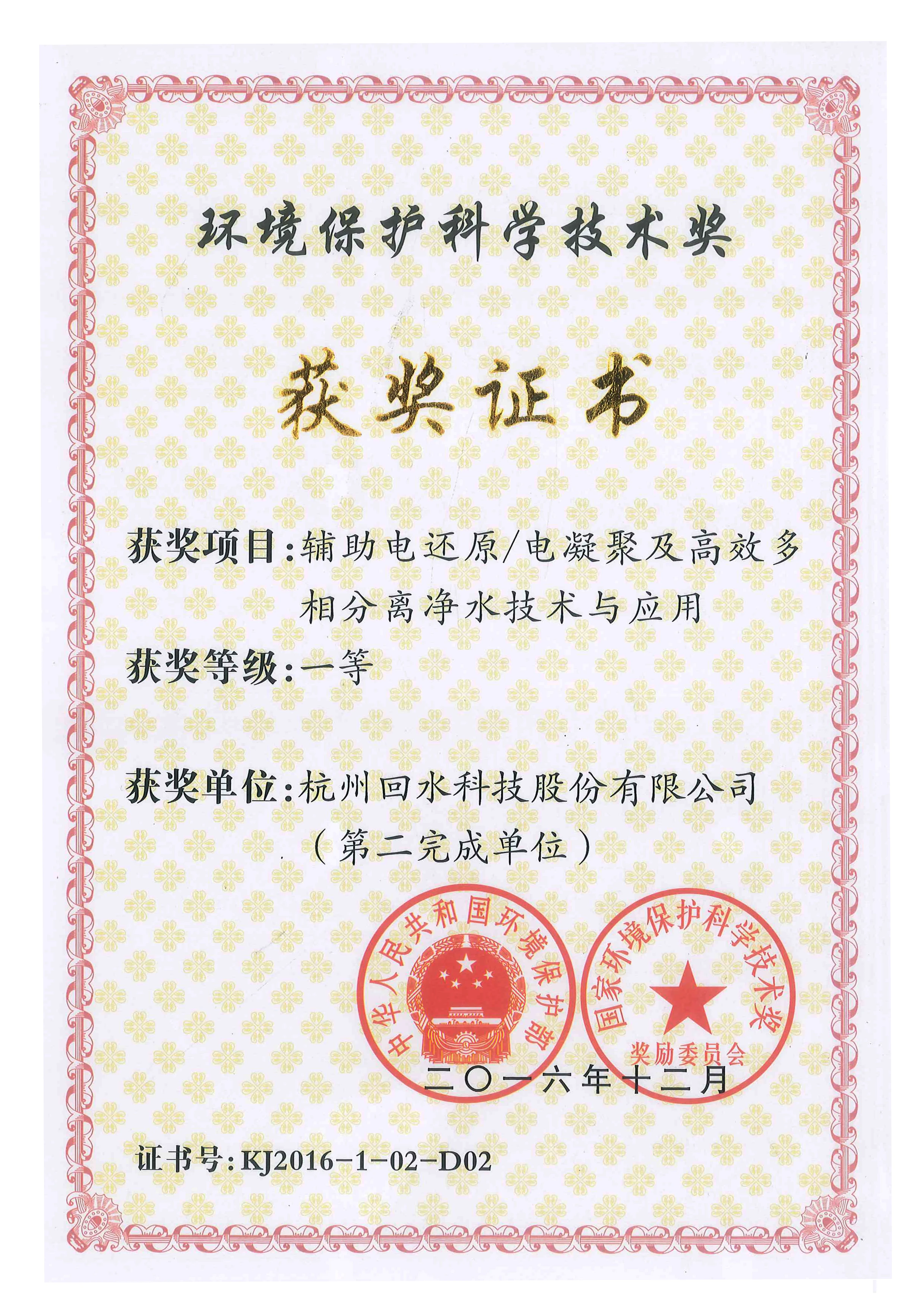 热烈祝贺回水科技获得国家环境保护科技技术奖一等奖