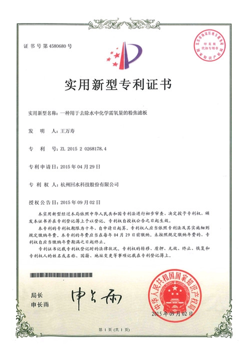 经过多年的创业与发展,回水科技沿着污染治理、资源回用、绿色生产技术的发展思路逐步推进,形成了以高效除磷、活性焦吸附去除水污染COD、活性焦吸附净化气体(VOCS、臭异味)、高效除氟等环境治理核心应用高新技术。公司已建立起完善的企业质量控制与管理体系,通过了ISO9000质量管理与质量保证体系认证、ISO45001职业健康安全管理体系认证和安全生产标准化认证。通过全产业链的打造和专注技术领域的研发,公司以在污水末端COD治理和废气VOCS治理中实现“高标准建设、低成本运营”的活性焦吸附技术作为企业的发展目标和核心价值,已与众多知名环保企业和设计院所建立战略合作关系。
