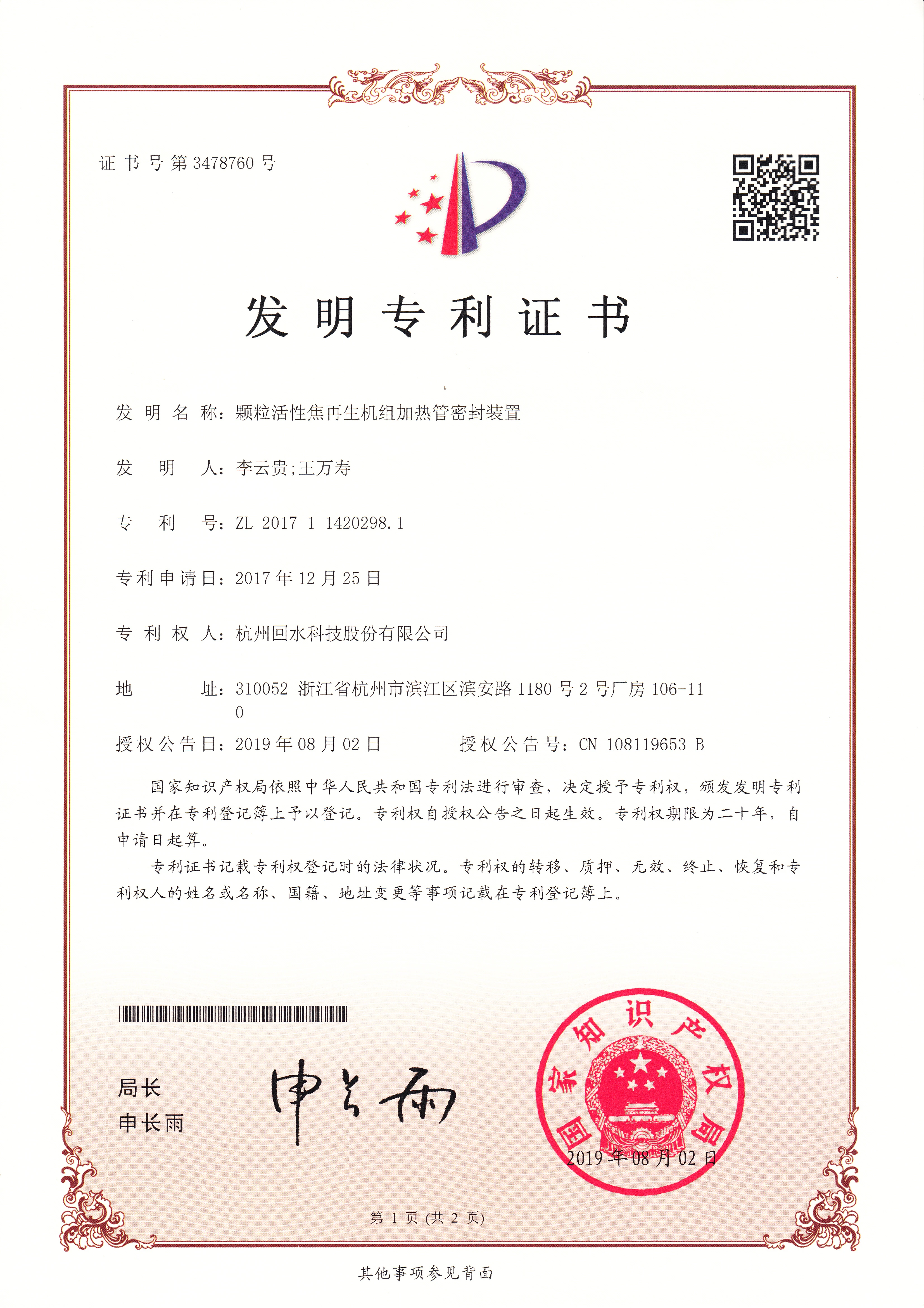 与中国科学院共同研发的“功能性吸附微界面构造及深度净水技术”获得2017年度国家技术发明奖二等奖;