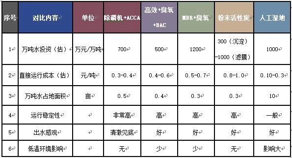 二、市政污水深度处理工艺比较: